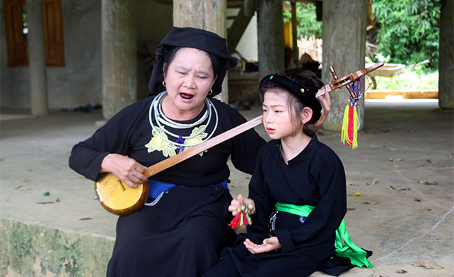 Bà Mỵ hướng dẫn cháu gái hát Then.