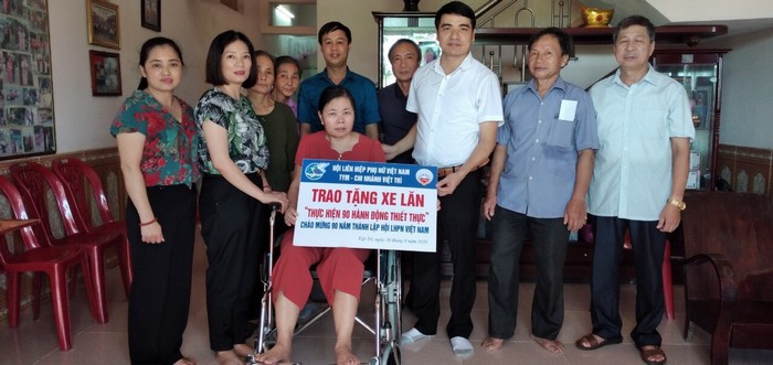 TYM chi nhánh Việt Trì tặng thành viên Nguyễn Thị Hồng Điệp (Thành phố Việt Trì) một chiếc xe lăn do chị bị căn bệnh Parkinson chuyển biến nặng không thể đi lại
