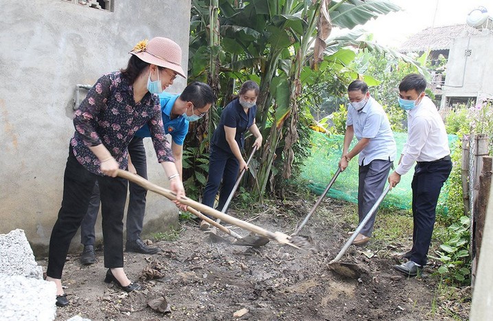 Lãnh đạo Hội HPN tỉnh Yên Bái cùng phụ nữ huyện Yên Bình xây bể chứa rác thải