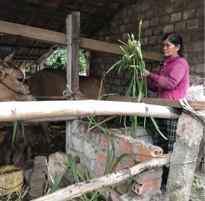 Tuy nhiên, số vốn vay đó cũng chỉ tạm đủ cho con trang trải tiền học phí. Do đó, với ước muốn để có thêm tiền trang trải cuộc sống nuôi con ăn học, chị đã nảy ra ý định mở rộng phát triển chăn nuôi heo, bò. Năm 2014, chị mạnh dạn vay vốn chương trình cho vay hộ nghèo với số tiền 30 triệu đồng để đầu tư làm chuồng và mua 01 con bò sinh sản về nuôi, sau 3 năm, chị đã có thêm 02 con bê con. Chị quyết định bán 02 bê con cộng thêm tiền từ các khoản thu nhập khác để tất toán khoản vay hộ nghèo và học sinh sinh viên từ Ngân hàng CSXH. Với đức tính cần cù chịu khó, chị bàn với chồng tiếp tục xin vay 50 triệu đồng để mua thêm 02 con bò sinh sản và sửa chữa lại chuồng trại. Nhờ có kinh nghiệm trong việc chăn nuôi trước đó, nên 3 con bò sinh sản của gia đình chị cho đều đặn mỗi năm 03 con bê con. Từ năm 2016 – 2019, nhờ vào nguồn thu nhập từ việc chăn nuôi bò, chị mua thêm cây giống là keo, bạch đàn; thuê nhân công để trồng 02 hecta rừng. Có thể nói thu nhập gia đình chị hiện đã ổn định, xây dựng được ngôi nhà khang trang, cải tạo khuôn viên trong vườn sạch đẹp, các con chị đã học xong đại học và có việc làm ổn định.