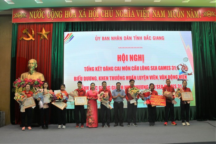 Nhằm động viên kịp thời các nữ vận động viên Bắc Giang đạt thành tích xuất sắc tại Sea Games 31, chiều 25/5/2022, Hội LHPN tỉnh Bắc Giang đã trao Bằng khen và tiền thưởng cho 7 nữ vận động viên.