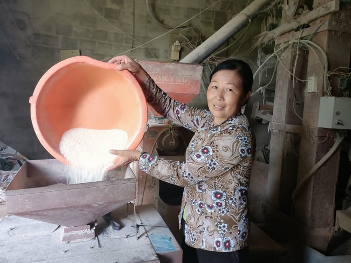 Chị Khuyên đang xay sát lúa cho người dân