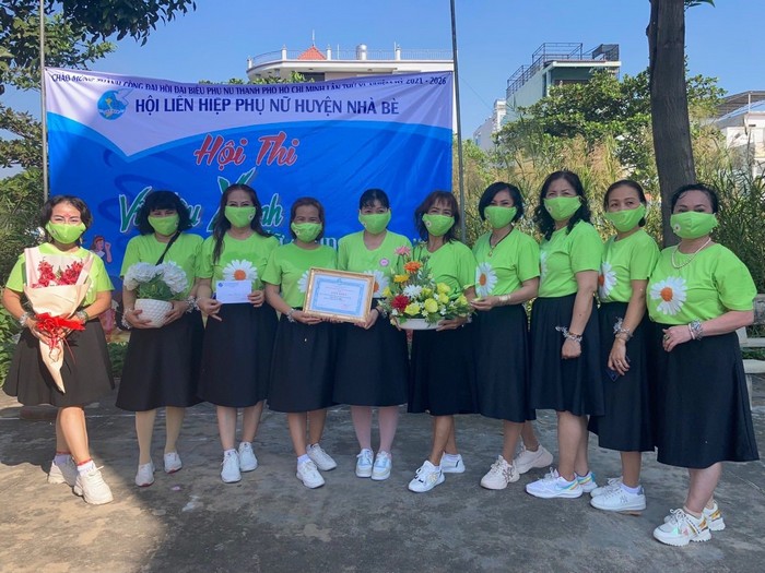 Cô Mỹ (ngoài cùng phải ảnh) tham gia hội thi của Hội LHPN huyện Nhà Bè Trong bộ trang phục màu xanh lá dự thi “Vũ điệu xanh nữ chung cư” do Hội LHPN huyện Nhà Bè tổ chức vào đầu năm 2022 nhìn khó đoán được tuổi thật của cô Mỹ. Với nụ cười thường trực cùng những động tác trẻ trung, khéo léo, chính xác của cô khiến nhiều người trẻ ngưỡng mộ. Đặc biệt, nguồn năng lượng dồi dào từ nhóm nhảy toàn những người lớn tuổi đã truyền cảm hứng cho nhiều chị em, nhất là đối tượng phụ nữ chung cư và những phụ nữ cao tuổi. Từ cuộc thi, cô Mỹ đã trở thành cầu nối để đưa tổ chức Hội đến gần hơn với phụ nữ chung cư.