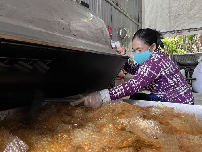 Chị Lương Dung (61 tuổi) ở phường Hiệp Tân, thị xã Hòa Thành làm nội trợ trong gia đình cho biết: “Mỗi khi đơn hàng nhiều, chị Hoàng thường gọi tôi đến phụ giúp. Tôi thường cắt bánh tráng, vào các gói gia vị. Có khi khâu nào chưa hoàn thành tôi làm ở khâu đó. Thu nhập được trả theo số lượng sản phẩm hoàn thành, thường tôi cũng được khoảng 150 nghìn/ngày”. Chính nhờ công việc thời vụ này đã giúp chị có thêm khoảng thu nhập để tiết kiệm cho gia đình.