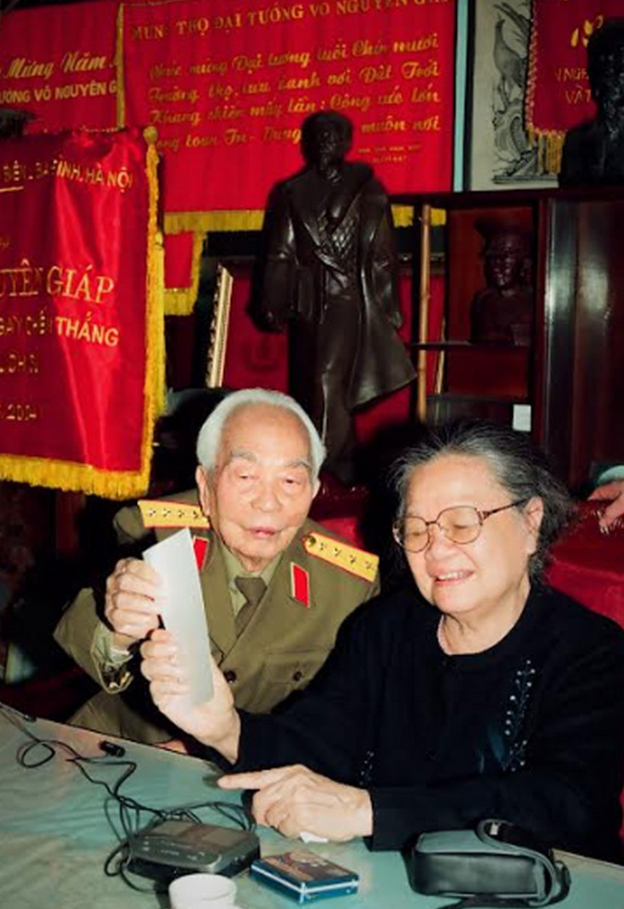 Đại tướng Võ Nguyên Giáp và phu nhân Đặng Bích Hà đón tiếp khách tại nhà riêng.