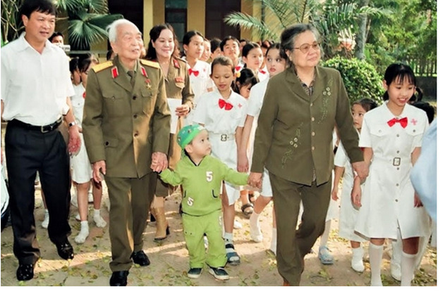 Đại tướng Võ Nguyên Giáp và phu nhân Đặng Bích Hà với các cháu lớp học tình thương của NSND Tường Vy.