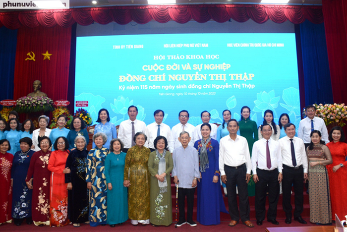 Hội thảo nhân kỷ niệm 115 năm Ngày sinh Cố Chủ tịch Hội LHPN Việt Nam Nguyễn Thị Thập, được tổ chức trực tiếp tại điểm cầu trung tâm ở tỉnh Tiền Giang và trực tuyến tại 95 điểm cầu trên cả nước với gần 1.500 đại biểu tham dự.