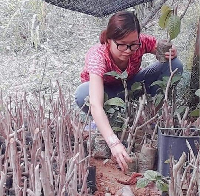 Chị Dương Khánh Ly ươm trồng thêm trà hoa vàng nhằm phát triển mô hình trồng cây dược liệu