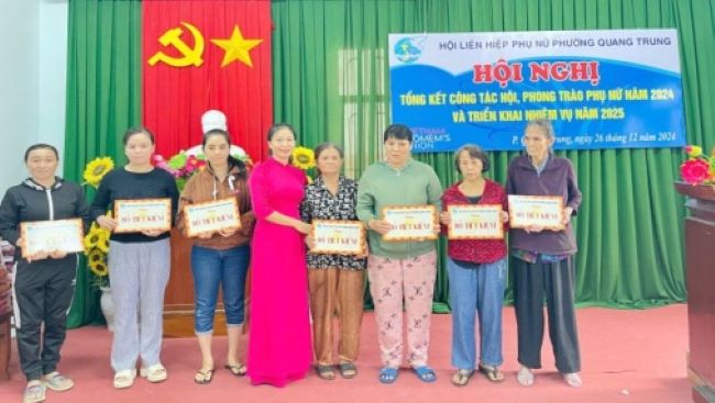 Trao “Sổ tiết kiệm” cho các chị hội viên, phụ nữ có hoàn cảnh khó khăn, đau ốm Hàng năm, Hội LHPN phường Quang Trung tổ chức phát động phong trào “Nuôi heo đất tiết kiệm” đến toàn thể cán bộ, hội viên phụ nữ trên địa bàn tham gia với hình thức tiết kiệm từ chi phí sinh hoạt gia đình, từ nguồn phế liệu bán được qua mô hình phân loại rác tại nhà, cắt giảm các chi phí không cần thiết… Mô hình được Hội phụ nữ duy trì từ nhiều năm nay và đã phát huy hiệu quả thiết thực trong việc chia sẻ, giúp đỡ phụ nữ khó khăn, phụ nữ nghèo, gia đình chính sách, trẻ em nghèo vượt khó học giỏi… góp phần thực hiện tốt công tác an sinh xã hội tại địa phương.