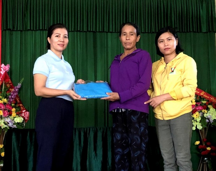 Chị Vân trao tặng áo dài cho phụ nữ có hoàn cảnh khó khăn