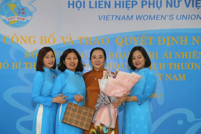 Bày tỏ tình cảm đong đầy kỷ niệm với hành trình thời gian công tác, hoàn thành xuất sắc nhiệm vụ được Đảng, Nhà nước và tổ chức giao phó, đồng chí Hoàng Thị Ái Nhiên trân trọng cảm ơn các thế hệ lãnh đạo tiền nhiệm của Hội LHPN Việt Nam đã rèn giũa, bồi đắp cho đồng chí những giá trị cốt lõi, trở thành người cán bộ Hội thấm nhuần về giá trị thiêng liêng của tổ chức, cũng như về vai trò, trách nhiệm lớn lao của người cán bộ TW Hội LHPN Việt Nam.