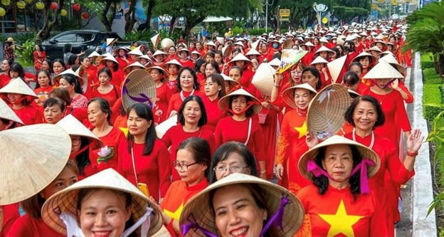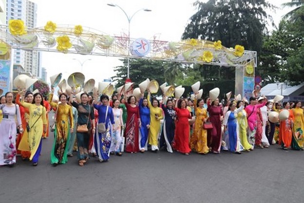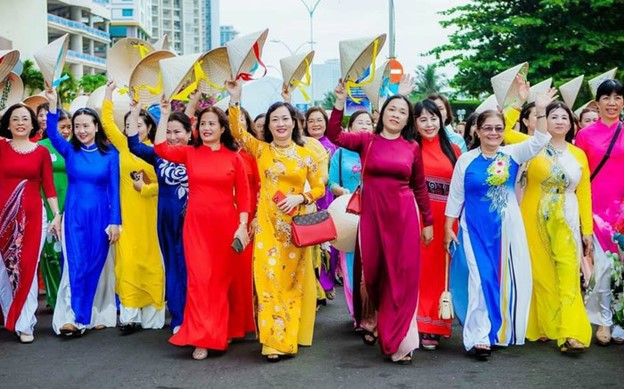 Cán bộ, hội viên phụ nữ tỉnh Khánh Hoà rực rỡ trong lễ diễu hành áo dài trên đường Trần Phú, Thành phố Nha Trang