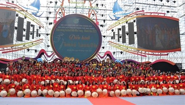 Các chị em cán bộ, hội viên phụ nữ tỉnh Khánh Hòa với những bộ áo dài đẹp nhất và chiếc nón lá mang vẻ đẹp rất riêng của người phụ nữ Việt Nam
