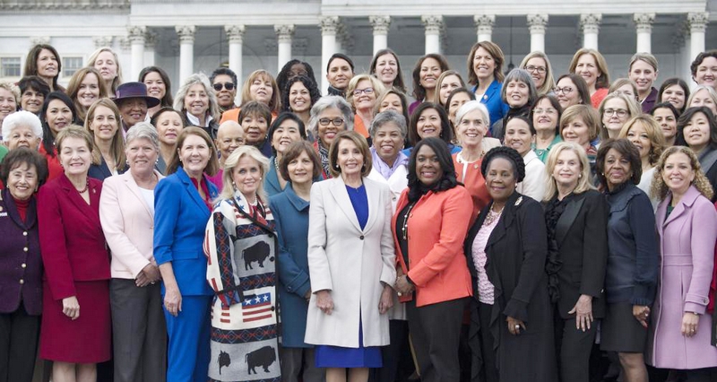 35 trong số 102 phụ nữ nói trên đã lần đầu tiên được bầu vào Hạ viện trong bầu cử giữa kỳ tháng 11/2018 trong làn sóng thành công lịch sử của các ứng cử viên nữ. Bà Nancy Pelosi tiếp tục làm nên lịch sử khi trở thành Chủ tịch Hạ viện lần nữa. Vây quanh bà Nancy Pelosi khi tuyên thệ là con của các nghị sĩ đảng Dân chủ. Đây là hình ảnh mang thông điệp rằng, nữ nghị sĩ là những người mẹ hoặc những người từng phải đối diện với kỳ thị giới, nay dũng cảm đứng ra lãnh sứ mệnh thay đổi cho chính họ và cho thế hệ tương lai. Bà Pelosi cho biết khi các thành viên mới tuyên thệ nhậm chức, Quốc hội Mỹ sẽ tươi mới và nền dân chủ sẽ được củng cố nhờ tinh thần lạc quan, lý tưởng, lòng yêu nước.