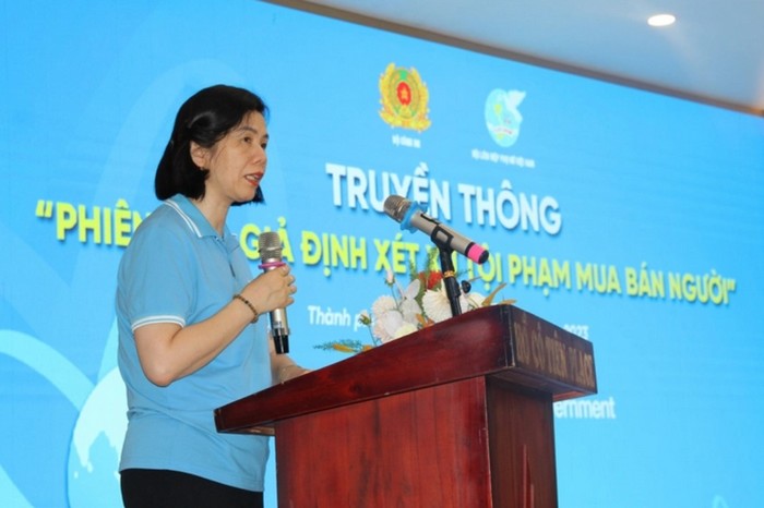 "Tôi cũng mong rằng, mỗi chúng ta hãy luôn là một tuyên truyền viên, mỗi gia đình là một lá chắn vững chắc góp phần cùng toàn dân, toàn xã hội chung tay phòng chống tội phạm mua bán người", bà Nguyễn Thị Minh Hương phát biểu.