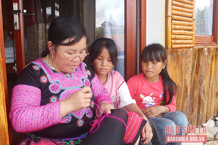 Theo bà Vàng Thị Ly, bản Tà Số 2, xã Chiềng Hắc, huyện Mộc Châu, chia sẻ: “Gái đẹp không biết cầm kim cũng hư, gái xinh không biết thêu thùa cũng hỏng”, nên việc thêu thùa được truyền từ đời này qua đời khác, cứ là phụ nữ Mông hoa thì ai cũng biết thêu, may, tự làm trang phục truyền thống. Những bộ trang phục truyền thống này được sử dụng hằng ngày trong đời thường, vào những dịp lễ hội, ngày tết, ngày cưới thì mặc những bộ phục trang mới nhất, đẹp nhất, nên toàn bộ trang phục của các thành viên trong gia đình sẽ do người phụ nữ kỳ công chuẩn bị.