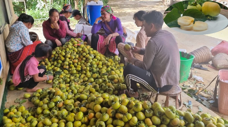 Bà con người Mông ở bản Hua Tạt, xã Vân Hồ, huyện Vân Hồ thu hoạch hồng giòn.