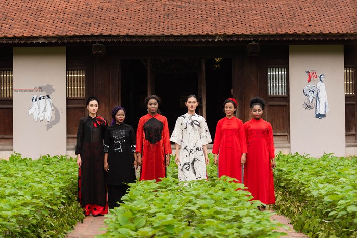 Tất cả những chiếc áo dài này đều được thực hiện bằng chất liệu truyền thống Việt Nam, đó là lụa Vietnam Silk House và vải Gai AP