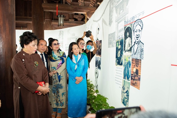 Trong khuôn khổ buổi họp báo giới thiệu sự kiện “Áo dài của chúng ta - Thế giới trong áo dài Việt”, NTK Minh Hạnh đã giới thiệu với Phó Chủ tịch Bùi Thị Hòa và công chúng cuộc trưng bày “Áo dài vua chúa triều Nguyễn”
