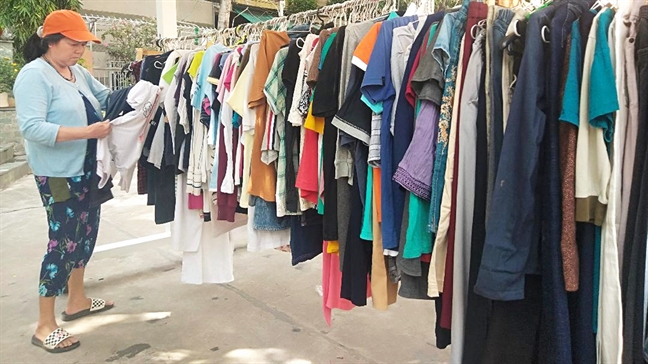 Sáng thứ Bảy, chị Lê Thị Bé chở theo lỉnh kỉnh đồ đạc đến nhà thờ Tân Sa Châu (387 Lê Văn Sỹ, P.2, Q.Tân Bình) để góp vào “phiên chợ”. Toàn bộ đồ đạc đem đến là do chị quyên góp từ người thân và hàng xóm. Hàng chục bộ quần áo cũ đã được chị Bé giặt sạch, ủi thẳng treo trên “kệ hàng”. Chỉ 30 phút sau, số quần áo trên đã đến tận tay những chị em cần nhận.