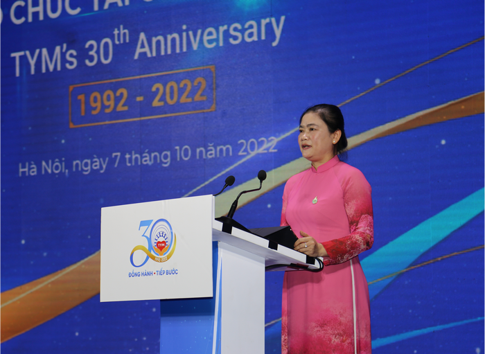 Tổng Giám đốc TYM Phạm Thị Thùy Linh phát biểu tại Lễ kỷ niệm 30 năm thành lập Tổ chức TYM