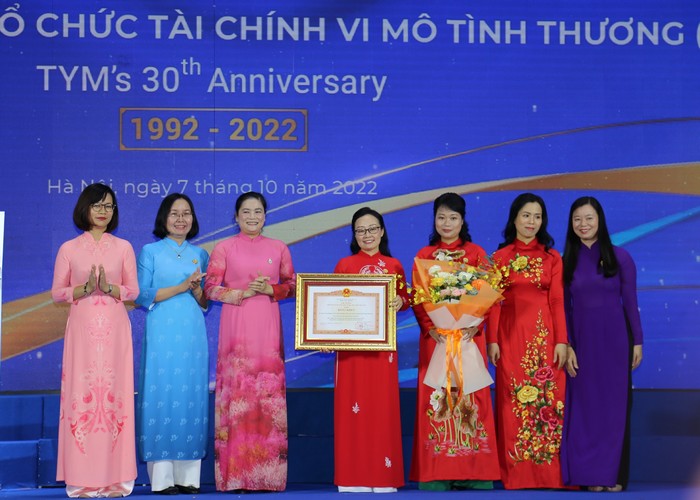 Tại buổi Lễ kỷ niệm, TYM đã vinh dự nhận Bằng khen của Thủ tướng Chính phủ cho tập thể đã có thành tích xuất sắc trong công tác phòng, chống dịch bệnh Covid – 19, góp phần vào sự nghiệp bảo vệ và chăm sóc sức khỏe nhân dân và Bằng khen của Thống đốc Ngân hàng Nhà nước Việt Nam dành cho tổ chức đã có thành tích xuất sắc đột xuất về ứng dụng công nghệ thông tin trong phát triển các sản phẩm, dịch vụ phục vụ đối tượng phụ nữ nghèo, cận nghèo và thu nhập thấp. Nhân dịp này, Đoàn Chủ tịch Hội LHPN Việt Nam đã trao Bằng khen cho 21 tập thể Hội LHPN các cấp, các chi nhánh TYM và 9 cán bộ TYM có thành tích xuất sắc đóng góp vào kết quả hoạt động 30 năm.