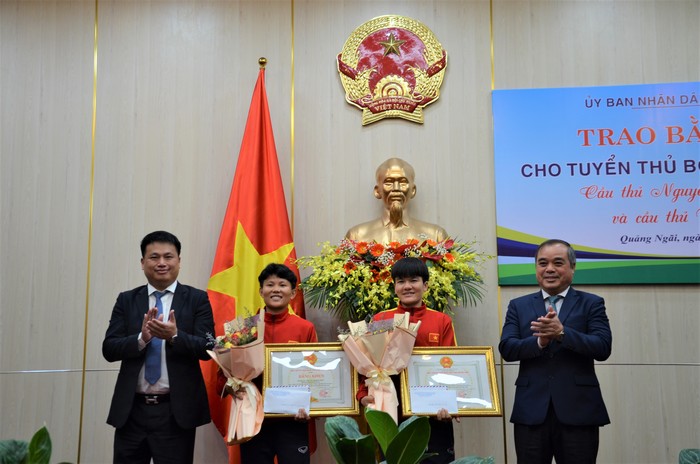 2 người hùng của Đội tuyển bóng đá nữ quốc gia Việt Nam được UBND tỉnh Quảng Ngãi vinh danh, tặng thưởng