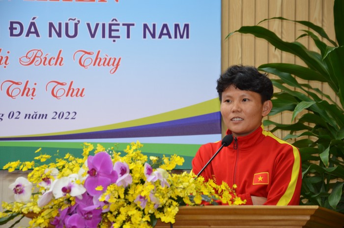 Phát biểu tại buổi gặp mặt, Phó Bí thư thường trực Tỉnh ủy, Trưởng Đoàn Đại biểu Quốc hội tỉnh Đặng Ngọc Huy chúc mừng hai nữ vận động viên quê Quảng Ngãi đã vượt qua nhiều khó khăn để đạt thành tích xuất sắc giúp đội tuyển nữ Việt Nam giành vé dự vòng chung kết World Cup bóng đá nữ. Đây là sự nỗ lực của cả đội tuyển nữ Việt Nam và các tuyển thủ quê Quảng Ngãi, mang lại niềm vinh dự cho đất nước và quê hương. Những thành tích của các em đã được Đảng, Nhà nước ghi nhận, Nguyễn Thị Bích Thùy đã được tặng thưởng Huân chương Lao động hạng Ba và Trần Thị Thu được nhận Bằng khen của Thủ tướng Chính phủ.