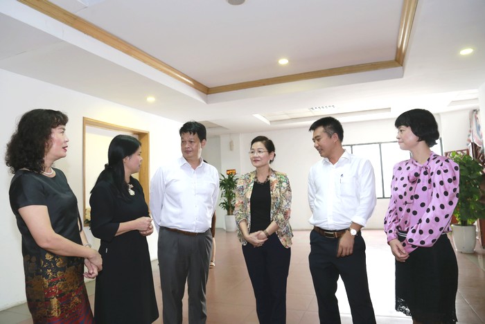 Phó Chủ tịch Hội LHPN Việt Nam Trần Thị Hương (giữa ảnh) trao đối với các đại biểu tham dự hội thảo