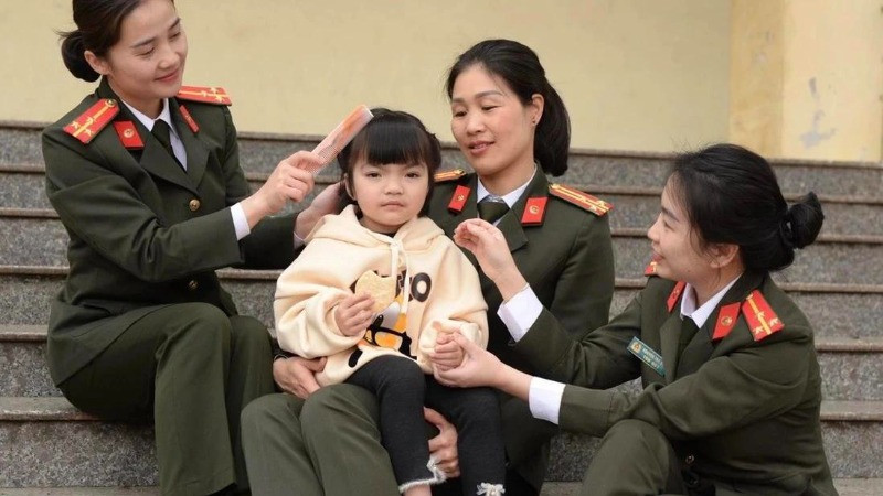 Mẹ đỡ đầu Công an tỉnh Cao Bằng cùng chăm sóc con đỡ đầu (Ảnh: Báo Nhân dân)