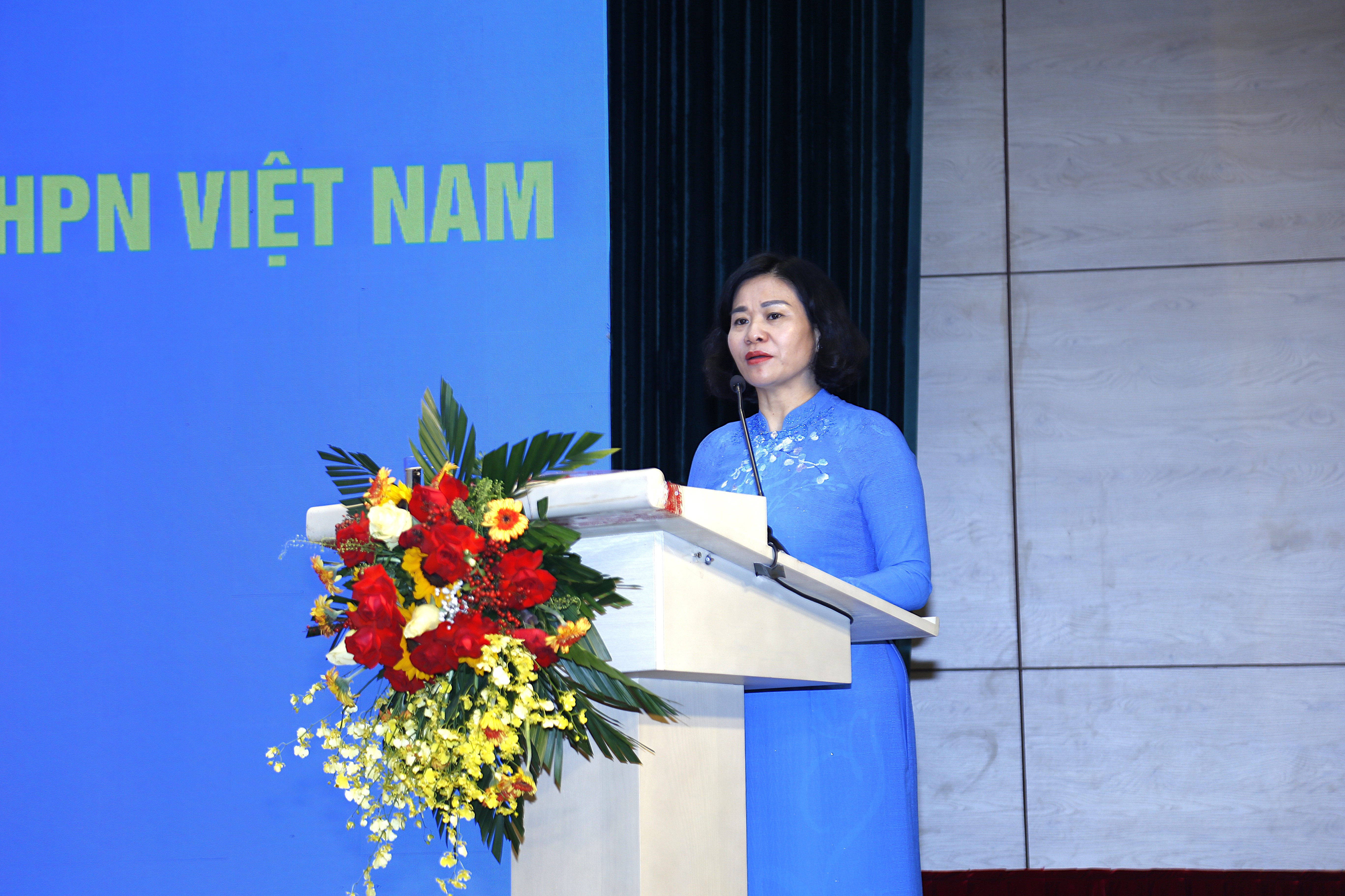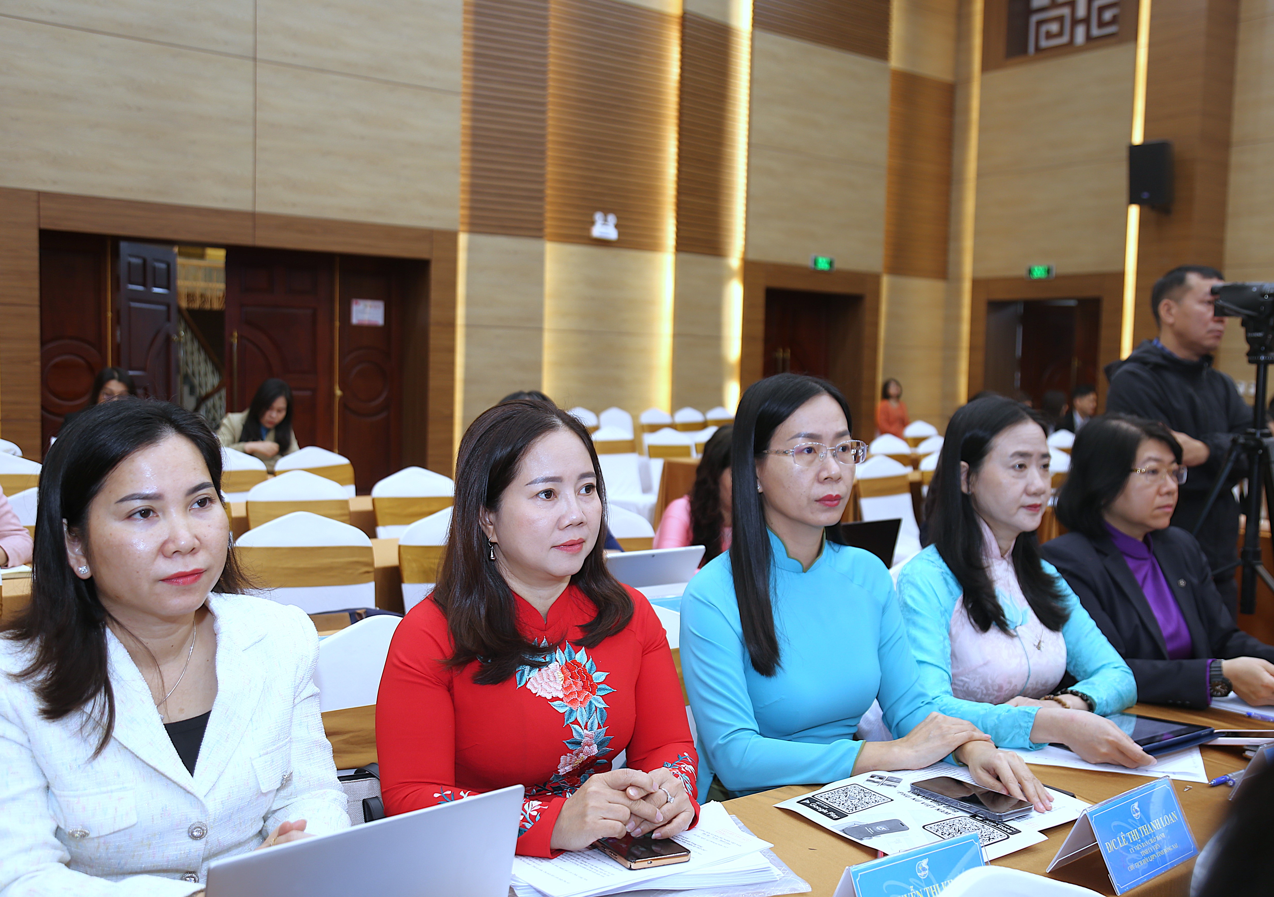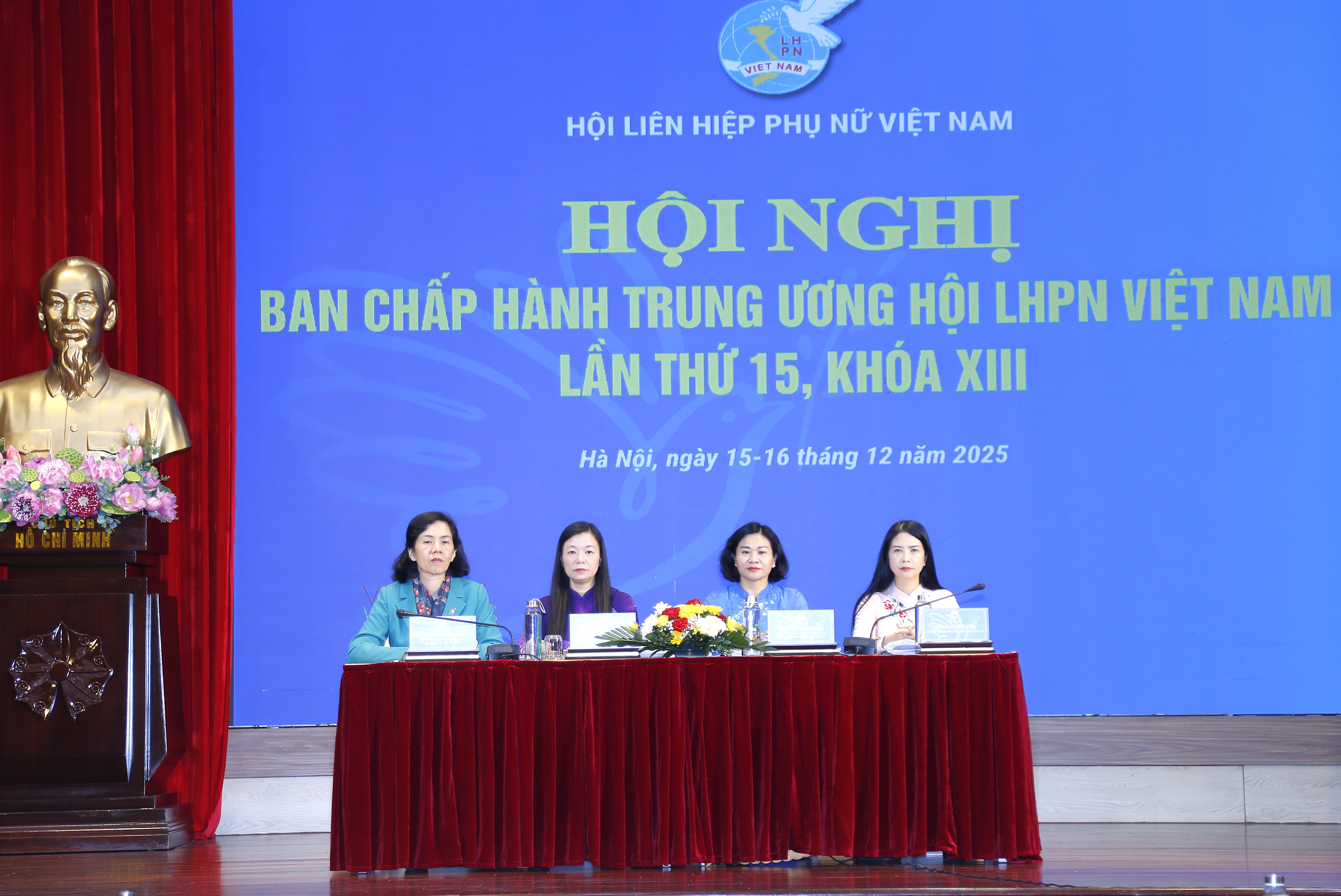 Ủy viên BCH TW Đảng, Phó Chủ tịch Uỷ ban MTTQ Việt Nam, Chủ tịch Hội LHPN Việt Nam Nguyễn Thị Tuyến (thứ 2 từ phải sang); Phó Chủ tịch Thường trực Hội LHPN Việt Nam Trần Lan Phương (phải ảnh); các Phó Chủ tịch Hội LHPN Việt Nam: Nguyễn Thị Minh Hương (trái ảnh), Nguyễn Thị Thu Hiền chủ trì Hội nghị