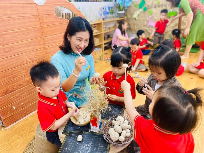 Hiện thực hóa phương châm và mục tiêu đó, Ban Giám hiệu Nhà trường đã đẩy mạnh việc ứng dụng các phương pháp dạy học tiên tiến, hiện đại như phương pháp cho trẻ làm quen tiếng Anh, phương pháp Montessori, STEAM và cách tiếp cận Reggio – Emillia. Tăng cường ứng dụng công nghệ thông tin trong thực hiện đổi mới nội dung, phương pháp giáo dục trẻ, nhất là trong các hoạt động giáo dục, trong việc lập kế hoạch giáo dục của giáo viên; khuyến khích giáo viên tích cực lồng ghép các trò chơi dân gian, bài hát dân ca, câu đố, hò, vè phù hợp với lứa tuổi vào hoạt động hàng ngày của trẻ.