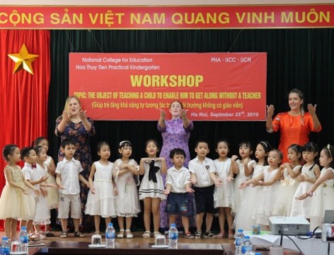 Hội thảo “Giúp trẻ tăng khả năng tự tương tác trong môi trường không có giáo viên” do Trường MNTH Hoa Thủy Tiên và các sinh viên Đan Mạch tổ chức (9/2019) (Ảnh: website http://hoathuytien.cdsptw.edu.vn/)