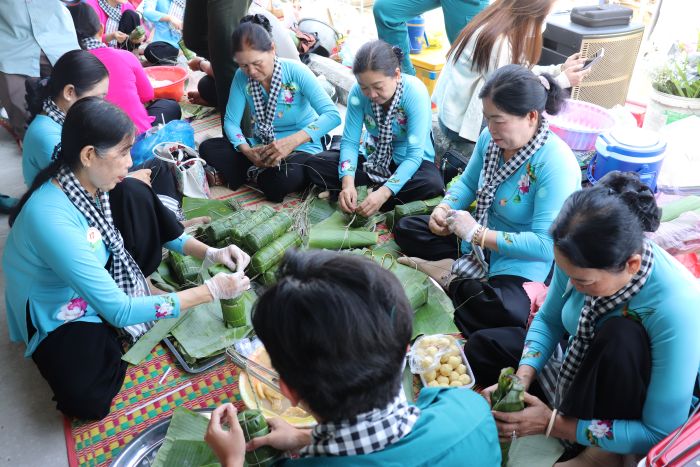 Bên cạnh đó, gian hàng trưng bày sản phẩm OCOP, sản phẩm phụ nữ khởi nghiệp và trình diễn nghệ thuật nấu, gói bánh tét mang đậm nét truyền thống với các sản phẩm áo dài, áo bà ba, khăn rằn và nghề làm bánh truyền thống đã thu hút nhiều lượt khách đến tham quan, mua sắm.