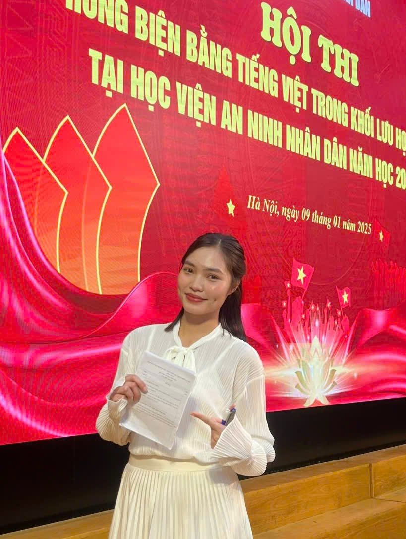 Lê Vân Anh, học viên lớp B8D54, chuyên ngành An ninh Điều tra, Học viện An ninh Nhân dân