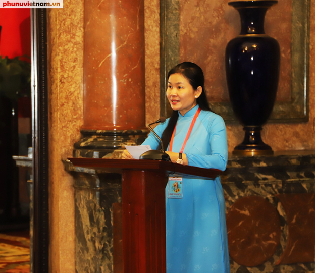 Uỷ viên dự khuyết TƯ Đảng, Phó Chủ tịch Hội LHPN Việt Nam Tôn Ngọc Hạnh báo cáo nhanh về kết quả 2 năm thực hiện chương trình "Mẹ đỡ đầu" do TƯ Hội LHPN Việt Nam phát động.
