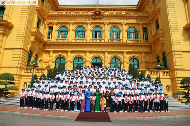 Phó Chủ tịch nước Võ Thị Ánh Xuân trò chuyện cùng các em dự trại hè "Hoa hướng dương". Tham dự buổi gặp mặt có Uỷ viên TƯ Đảng, Chủ tịch Hội LHPN Việt Nam Hà Thị Nga; Uỷ viên dự khuyết TƯ Đảng, Phó Chủ tịch Hội LHPN Việt Nam Tôn Ngọc Hạnh; Phó Chủ nhiệm văn phòng Chủ tịch nước Phạm Thanh Hà cùng đại diện lãnh đạo các ban/ đơn vị thuộc TƯ Hội LHPN Việt Nam và 101 cặp mẹ con tiêu biểu của chương trình "Mẹ đỡ đầu".