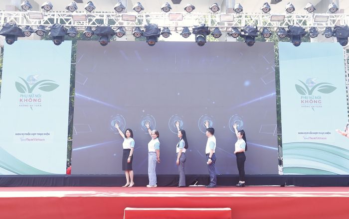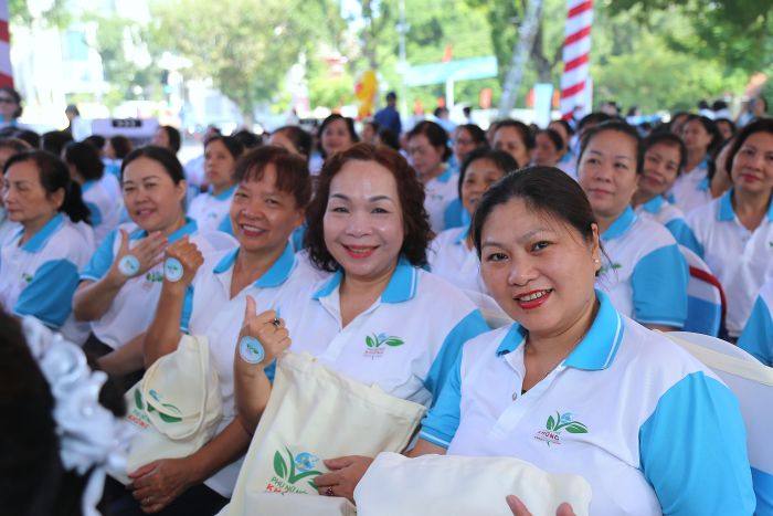 Lãnh đạo Hội LHPN Việt Nam, đại diện các cơ quan chức năng, các đơn vị đồng hành và hội viên phụ nữ cùng tham gia nghi thức cam kết hưởng ứng