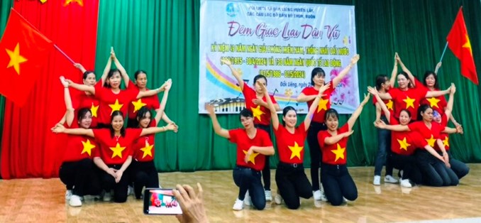 Hơn 10.000 hội viên, phụ nữ tỉnh Đắk Lắk đồng loạt thực hiện màn đồng diễn dân vũ trên nền nhạc ca khúc truyền thống bài hát Chiến thắng Điện Biên Phủ; Liên khúc Qua miền Tây Bắc, Inh lả ơi kết hợp xây dựng sản phẩm truyền thông hiện đại.
