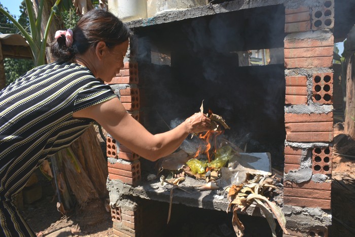 Chúng tôi đến nhà bà Lê Thị Nếp, ở khu vực Gò Lớn, thôn An Kim, xã Tịnh Giang vào một buổi trưa đầu tháng 5. Xung quang vườn nhà được quét dọn tươm tất, sạch sẽ. Bà Nếp cho biết khi chưa xây lò, hàng ngày bà phải xử lý rác từ lá cây xung quanh nhà và các loại rác thải khác bằng cách gom lại rồi đốt, vừa vất vả, vừa bụi bẩn do gió thổi tung rác trong quá trình quét, đốt, nhất là vào mùa mưa thì rác ùn đống lại không đốt được. Bà Nếp dẫn chúng tôi ra sau vườn và chỉ chiếc lò đốt rác được xây từ cuối năm 2019. Bà Nếp cho biết hơn 5 tháng nay nhờ có chiếc lò đốt mi ni này mà nhà cửa, vườn tược của bà luôn gọn gàng, sạch sẽ .