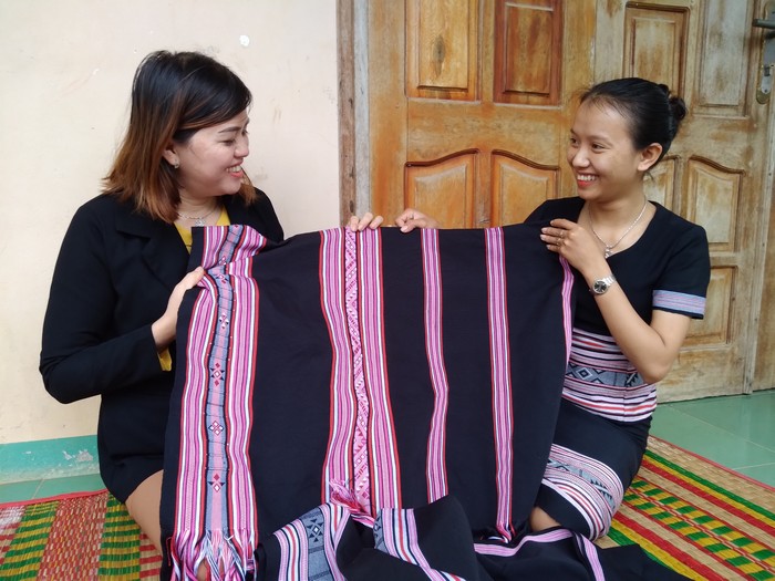 Chị Phạm Thị Kiều Oanh (21 tuổi) ở làng Teng chia sẻ, bản thân chị mới biết dệt mấy năm nay thôi, ban đầu học thấy khó, nhưng mà đã biết dệt rồi thì sẽ hăng say, nhất là dệt hoa văn có nhiều loại khác nhau. Với những công đoạn khó hơn như dệt trang phục, những hình vẽ khó, những tấm vải lớn, chị lại cùng moi người trong làng vui vẻ trao đổi, tạo ra một không khí sôi nổi, giúp đẩy nhanh quá trình học. Đến bây giờ, những người già trong làng hiểu biết về nghề dệt cũng hiếm dần nên bản thân chị tự cảm thấy mình phải cố gắng lưu giữ được càng nhiều kiến thức càng tốt để bảo tồn, gìn giữ và truyền dạy cho con cháu đời sau. Đồng thời, nhờ nghề dệt, kinh tế gia đình sẽ ngày càng phát triển, làm giàu cho quê hương.