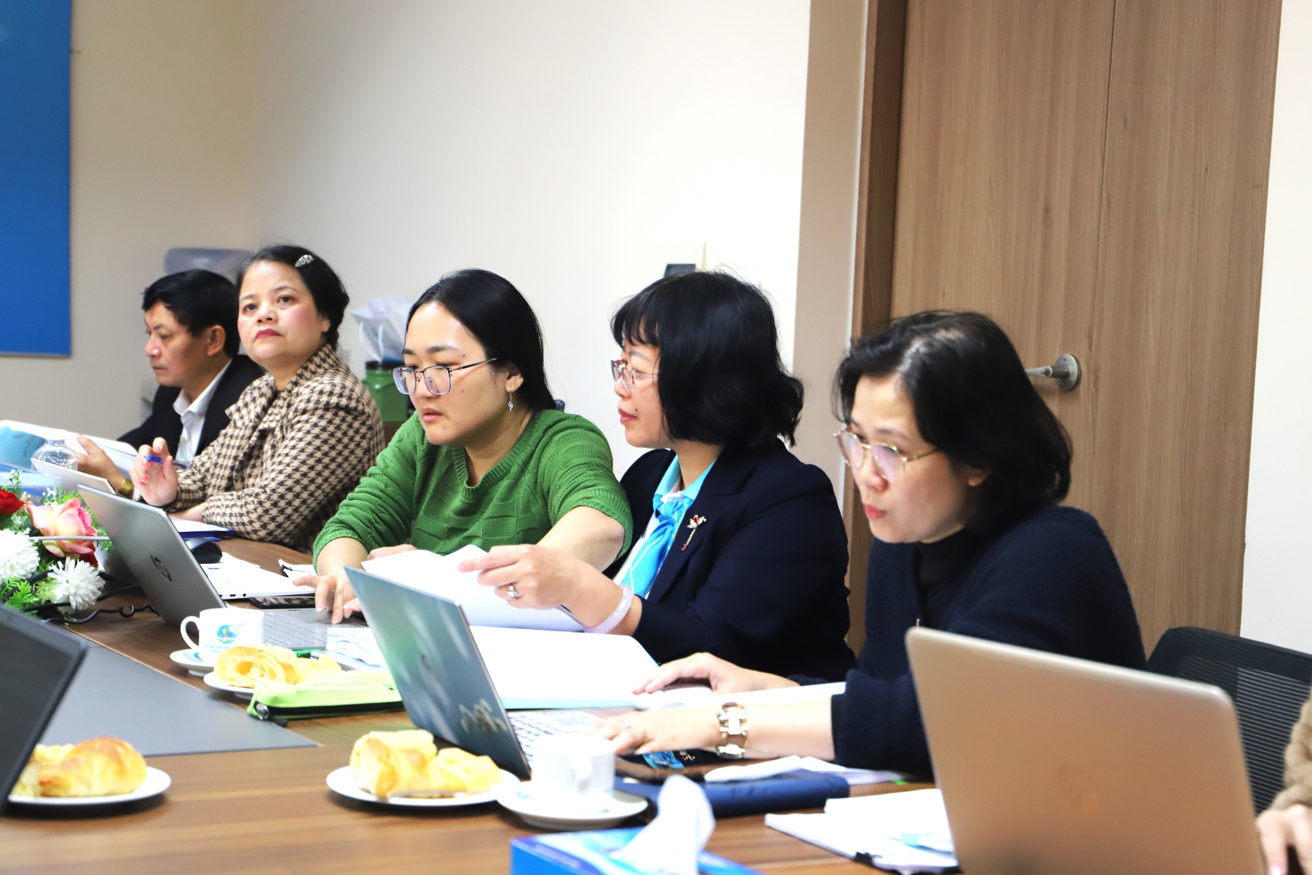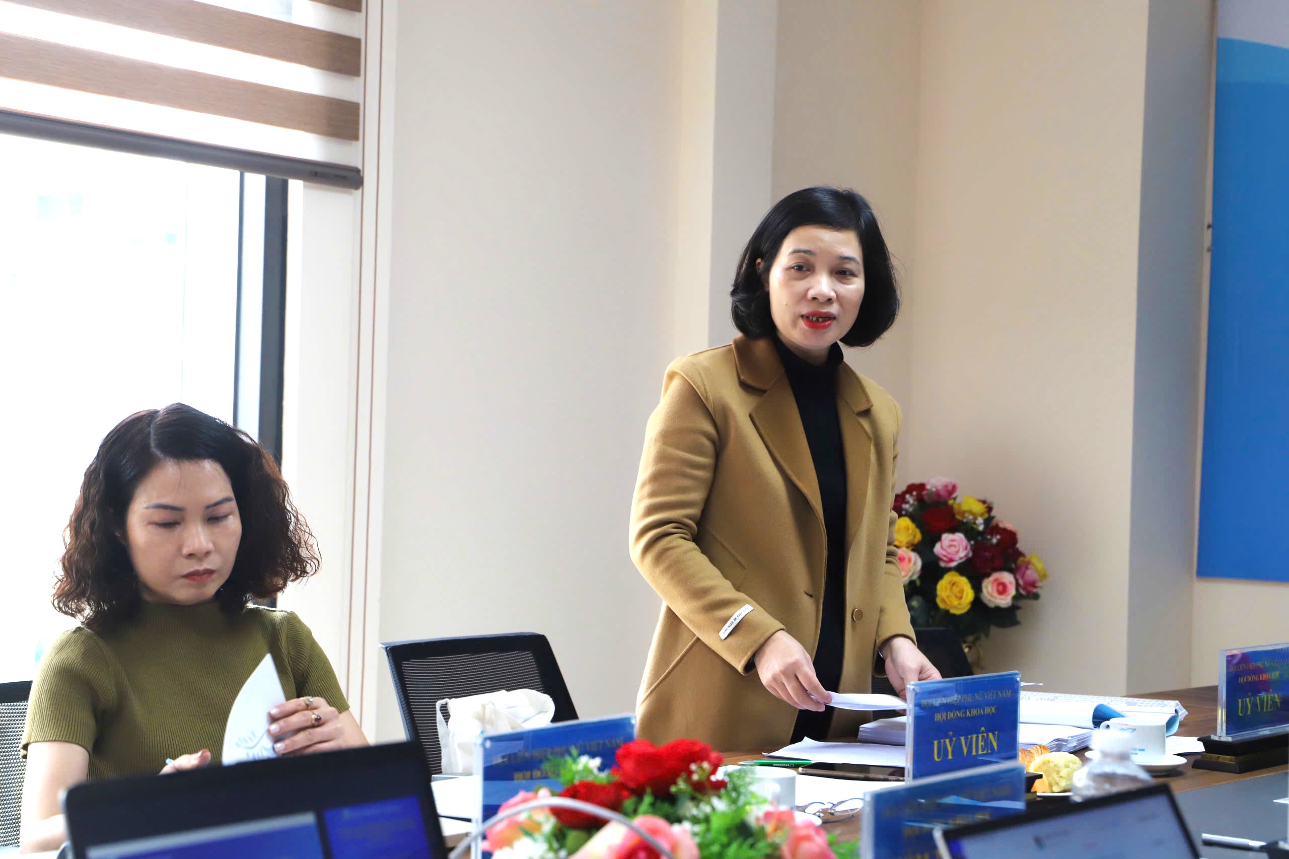 ThS. Nguyễn Thị Kim Dung (phải), Phó trưởng ban thường trực, Ban Công tác phụ nữ, góp ý đề tài nghiên cứu