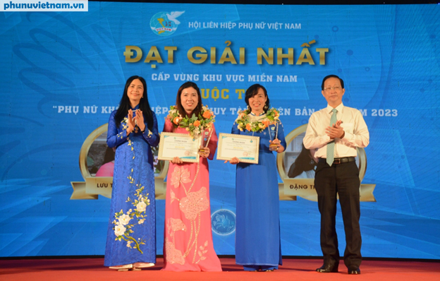 Bà Trần Lan Phương (bìa trái), Phó Chủ tịch Hội LHPN Việt Nam và ông Nguyễn Trúc Sơn, Phó Chủ tịch Thường trực UBND tỉnh Bến Tre, trao Giấy Chứng nhận và biểu trưng của Cuộc thi cho tác giả Dự án đoạt giải đặc biệt Phát biểu tại Lễ trao giải, Phó Chủ tịch Hội LHPN Việt Nam Trần Lan Phương cho biết, năm 2023 là năm nền kinh tế thế giới gặp rất nhiều khó khăn do ảnh hưởng của các yếu tố như đại dịch Covid-19, xung đột kéo dài ở Ukraine, tác động ngày càng tồi tệ của biến đổi khí khậu và chính sách thắt chặt tiền tệ để kiềm chế lạm phát của các nước lớn. Theo đánh giá của nhiều chuyên gia trong nước và quốc tế, tình hình kinh tế Việt Nam cũng có rất nhiều khó khăn và thách thức.