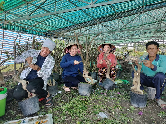 Qua tìm hiểu, chị biết cây hoa giấy phù hợp với đất phèn, sau khi thu hoạch xong lớp phân bón hữu cơ còn lại sẽ đem bón cây giúp cho đất tơi xốp, màu mỡ hơn. Năm 2020, chị mạnh dạn đưa cây hoa giấy về trồng thử nghiệm với số lượng vừa phải. Tranh thủ thời gian rảnh rỗi, chị tìm đến các nhà vườn ở xã Tân Dương, huyện Lai Vung, tỉnh Đồng Tháp và huyện Chợ Lách, tỉnh Bến Tre là những vùng chuyên trồng hoa giấy, để học hỏi cách thức chăm sóc cho loại cây này. Ngoài ra, chị còn tìm đọc tài liệu, kinh nghiệm trồng trên các trang mạng xã hội; đặt mua các loại giống Mỹ về ghép với nhiều giống khác nhau, để tạo cho vườn hoa đa dạng màu sắc đáp ứng nhu cầu, sở thích của khách hàng.