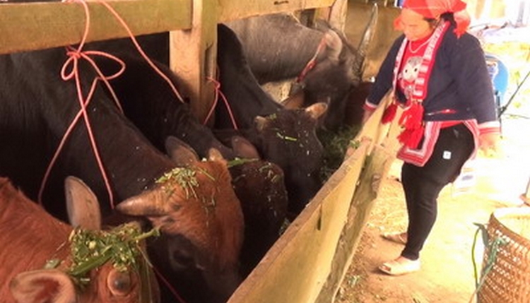 Chị cho biết, mặc dù gia đình sống ở vùng có điều kiện tự nhiên khó khăn nhưng lại có điều kiện đồi núi rộng để phát triển chăn nuôi gia súc gắn với trồng cỏ. Nhờ có diện tích đồi núi rộng nên gia đình thường chăn nuôi gia súc theo hình thức bán chăn thả, tức là trong một tuần gia đình thường cho gia súc lên đồi kiếm thức ăn khoảng 2 – 3 ngày, còn lại là nhốt cho ăn trong chuồng. Chăn thả như vậy sẽ làm cho gia súc phát triển tốt, thích ứng với các điều kiện khí hậu của tự nhiên và giảm thiểu bệnh tật do gia súc được vận động. Bên cạnh đó, phải đảm bảo giữ cho chuồng trại gia súc thoáng mát vào mùa hè và kín gió để giữ ấm vào mùa đông. Khi chuẩn bị vào mùa đông phải có biện pháp chủ động dự trữ nguồn thức ăn cho gia súc, kể cả nguồn thức ăn thô xanh như rơm khô, cỏ ủ chua và thức ăn tinh như bột ngô, cám gạo…