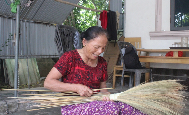 Bà Nguyễn Thị Thuỷ (60 tuổi) cho biết: "Nghề làm chổi đót ở làng được cha truyền con nối, tôi bắt đầu theo nghề từ năm 10 tuổi đến nay đã gần 50 năm. Nghề này từ người già đến trẻ nhỏ, những ai sinh ra từ làng đều biết làm chổi đót".