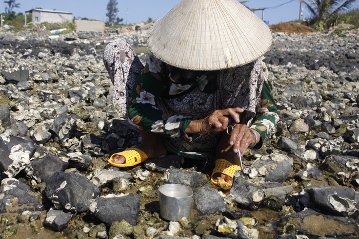 Phụ nữ miền biển Quảng Ngãi đục đá tìm hàu