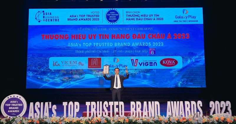 Đại diện của Job3s nhận giải thưởng Top 10 Thương hiệu uy tín hàng đầu Châu Á 2023
