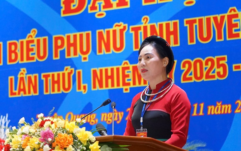 Bà Âu Thị Mai, Chủ tịch Hội LHPN tỉnh Tuyên Quang, phát biểu tại Đại hội Đại hội đã tập trung trí tuệ, dân chủ thảo luận và nhất trí thông qua các văn kiện quan trọng; khẳng định quyết tâm tiếp tục đổi mới mạnh mẽ, toàn diện nội dung, phương thức hoạt động của tổ chức Hội các cấp, nhằm thực hiện tốt vai trò nòng cốt trong công tác phụ nữ; tạo động lực động viên các tầng lớp phụ nữ phát huy nội lực, khát vọng vươn lên, năng động, sáng tạo, trách nhiệm xây dựng quê hương, xây dựng gia đình no ấm, tiến bộ, hạnh phúc, văn minh; nâng cao vai trò, vị thế của phụ nữ và tổ chức Hội.
