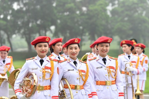Trong đội hình đó, có hơn 600 đồng chí nữ quân nhân và dân quân tự vệ được lựa chọn ở các đơn vị trong toàn quân, tham gia đội hình của 5 khối nữ: Sĩ quan Quân y, Quân nhạc, Lực lượng Gìn giữ hòa bình Việt Nam, Du kích miền Nam và Dân quân Tây Bắc. Trong quá trình thực hiện nhiệm vụ, lực lượng của khối nữ đã nỗ lực luyện tập, đảm bảo chất lượng và tiến độ theo kế hoạch. Quá trình tập luyện, mặc dù gặp một số khó khăn nhất định, song chị em đã cố gắng, xác định rõ tư tưởng, ý chí quyết tâm cao để hoàn thành xuất sắc nhiệm vụ được cấp trên tin tưởng, giao phó.